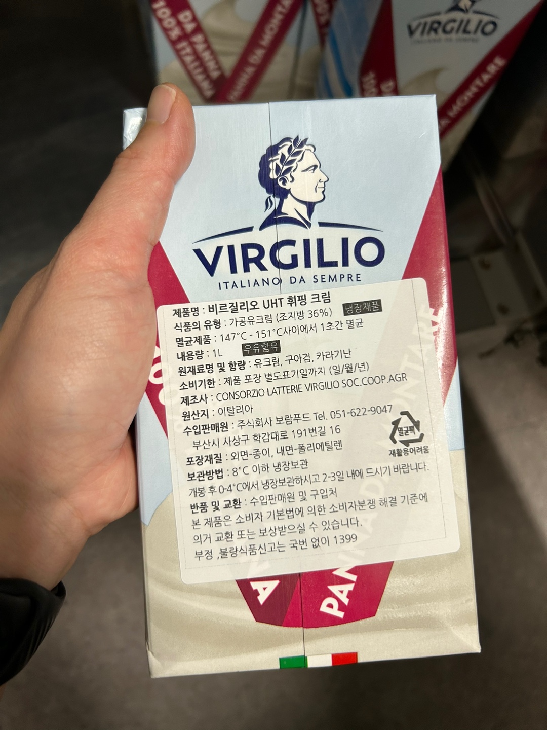 비르질리오 휘핑크림 1L 동물성 생크림 동물복지 무항생제 무호르몬제 (임박26년5월25일)
