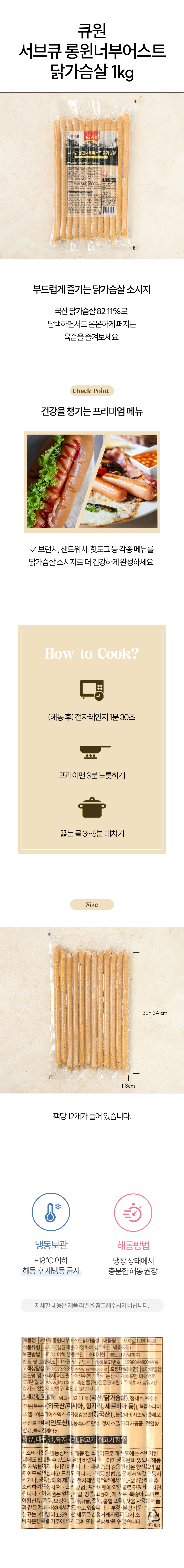 이미지 확대보기서브큐 롱윈너 부어스트 닭가슴살 소시지 1kg 냉동