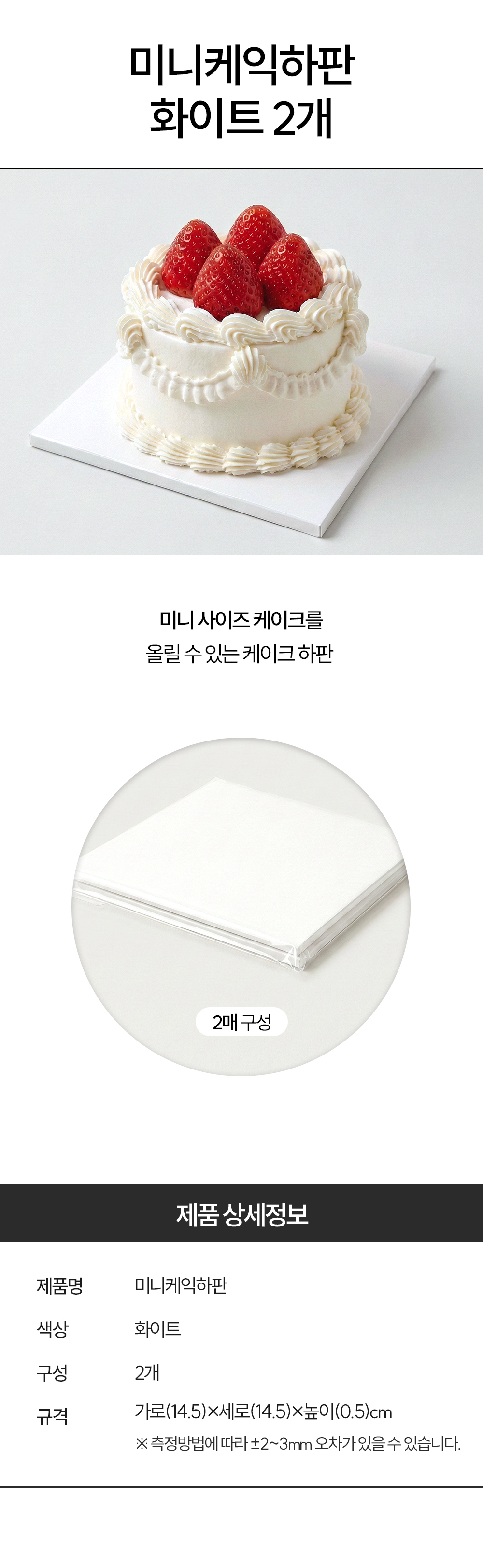이미지 확대보기(2매) 미니케익하판 화이트 케이크 하판 받침