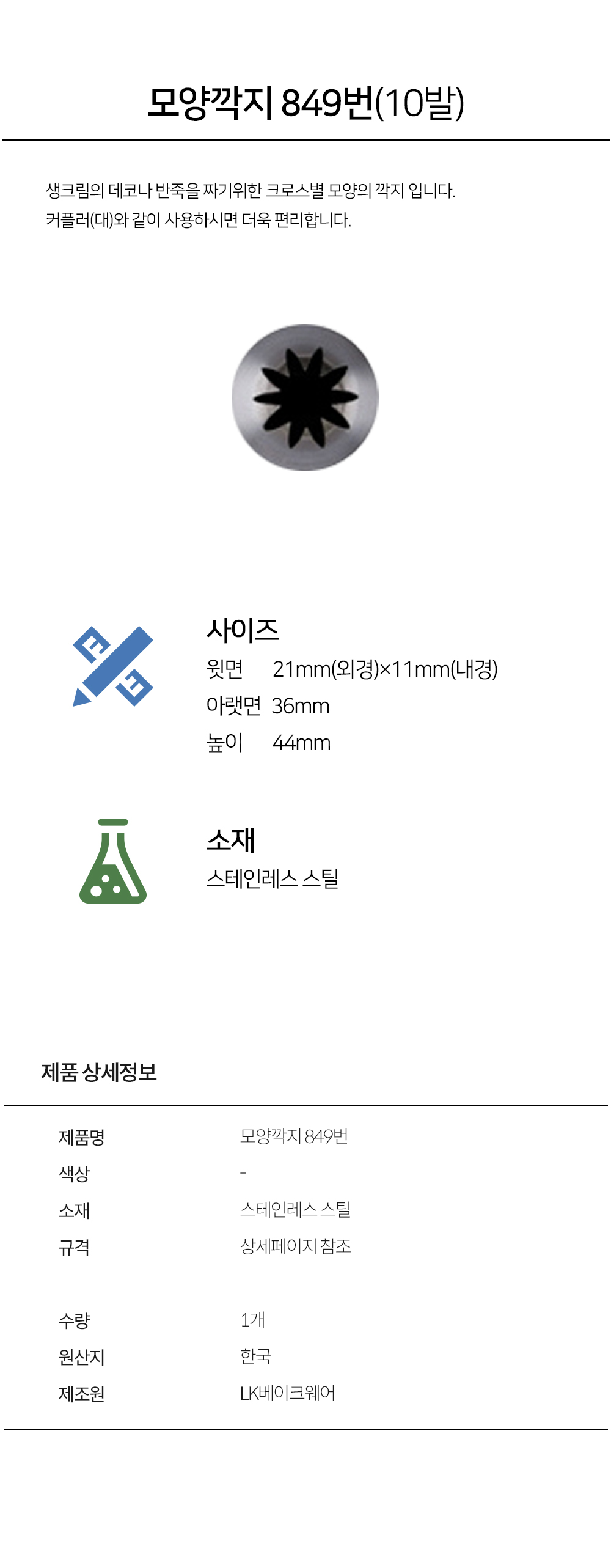 모양깍지 849번(10발) / Φ 21.0mm / 크로스별깍지 / Large